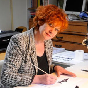 Finora ha illustrato oltre 150 libri, con segni diversi, versatili e sempre sorprendenti. Sono sue le ironiche e surreali illustrazioni per l’albo di Toon Tellegen Storie di animali per quattro stagioni (Sinnos 2018).